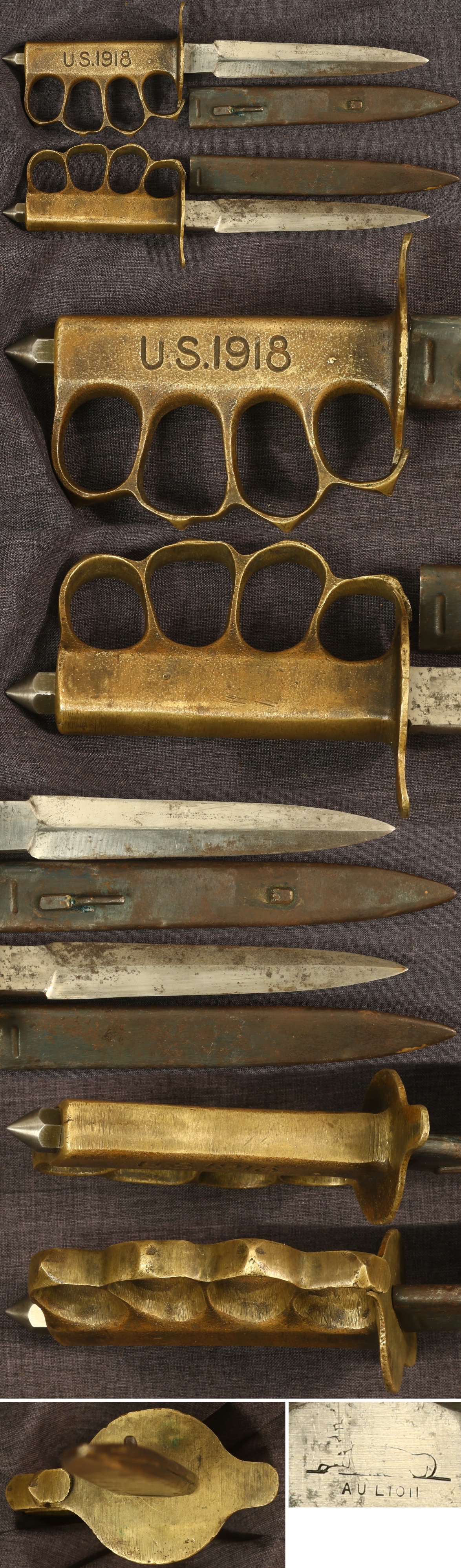 M1918 trench knife by Au Lion, with scabbard, guard reputedly damaged by a tank | Very Good | $1150.00 |