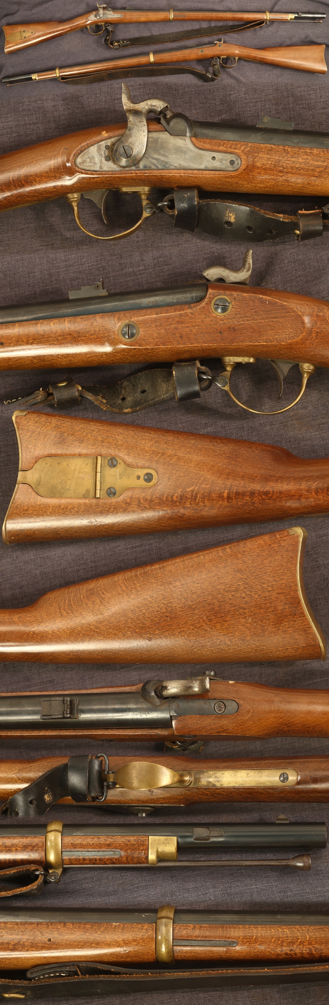Italian Armi Jager blackpowder reproduction of M1863 Remington Zouave rifle. Serial number 900. Date coded "XX8" for 1972. Gun is in good condition overall with some case colors on lock, excellent blued finish on barrel, and patina coloration to brass parts. Cleaning worm present in patchbox. Stock is good with scattered handling marks and scratches. Equipped with a black leather sling. Mechanically good. We are not gunsmiths and do not warrant this gun to shoot safely. Please seek guidance from an expert in blackpowder gunsmithing if unsure about the safety and management of this rifle.