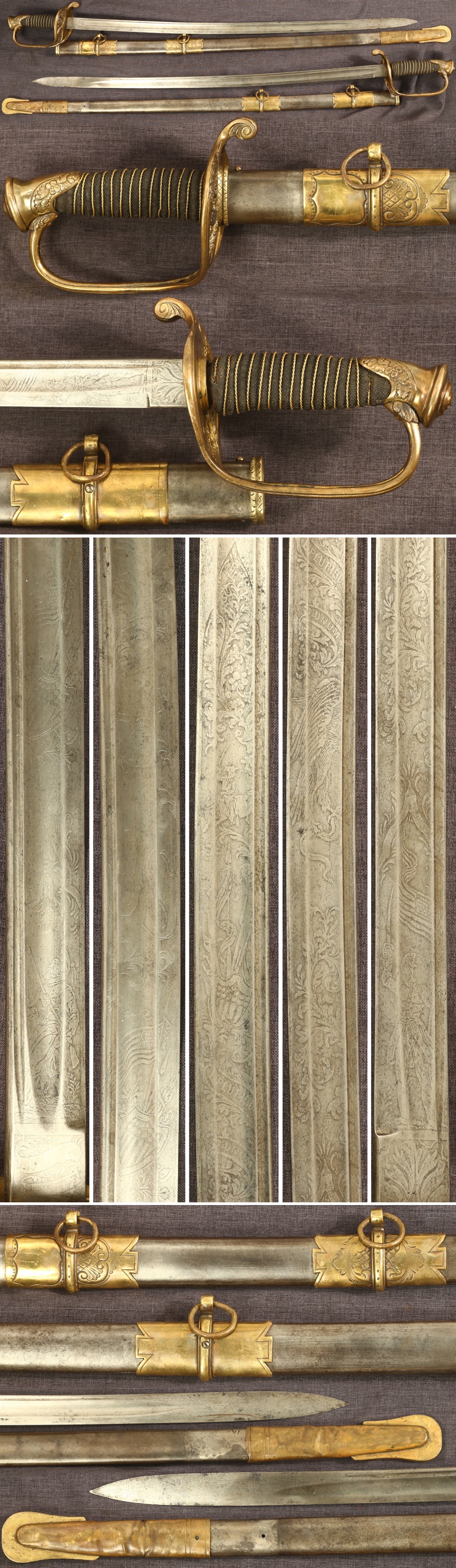 | M1850 foot officer sword with scabbard, fancy Sauerbier style blade | Good | $850.00 |