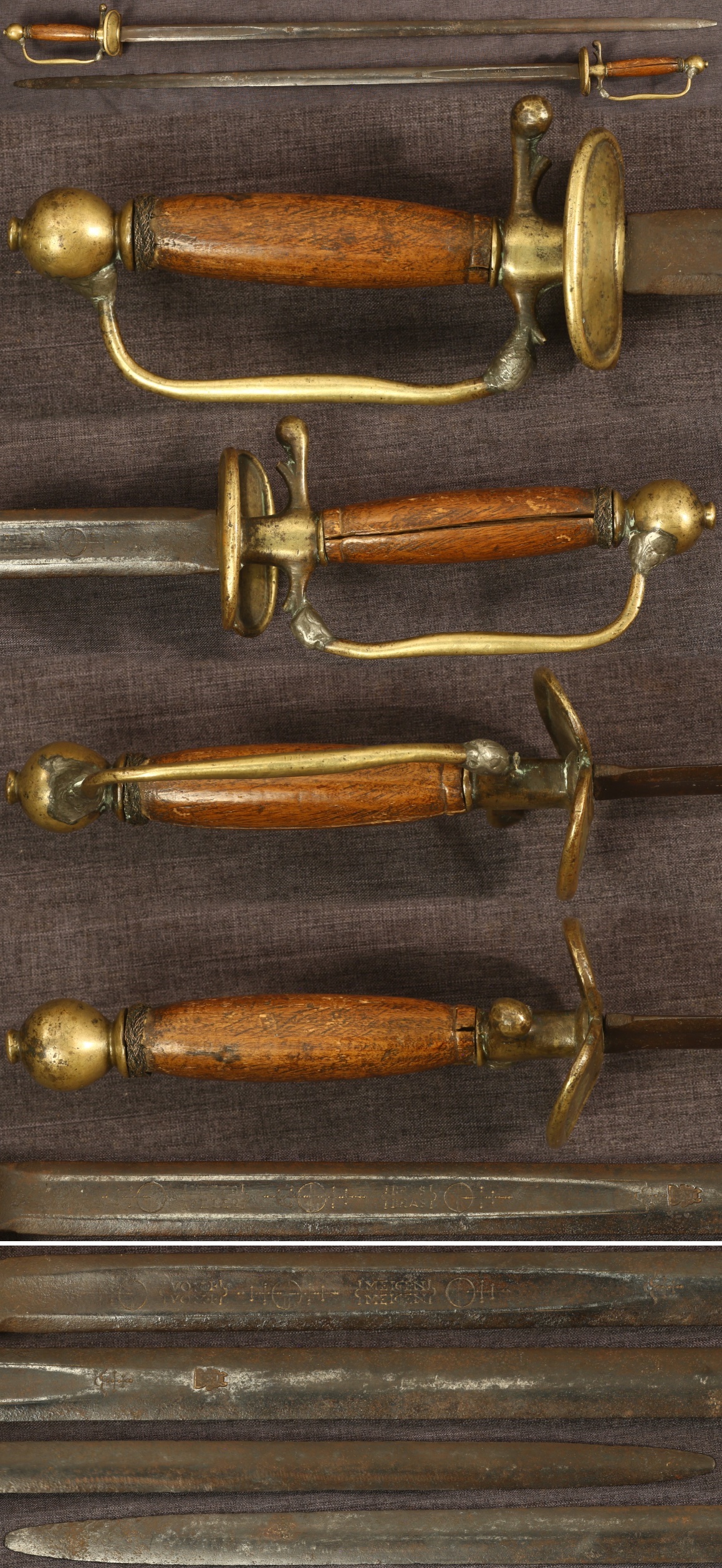 | C1750 American hilted smallsword utilizing early Solingen rapier blade signed "Peter Bras von Meigen" | Fair | $450.00 |