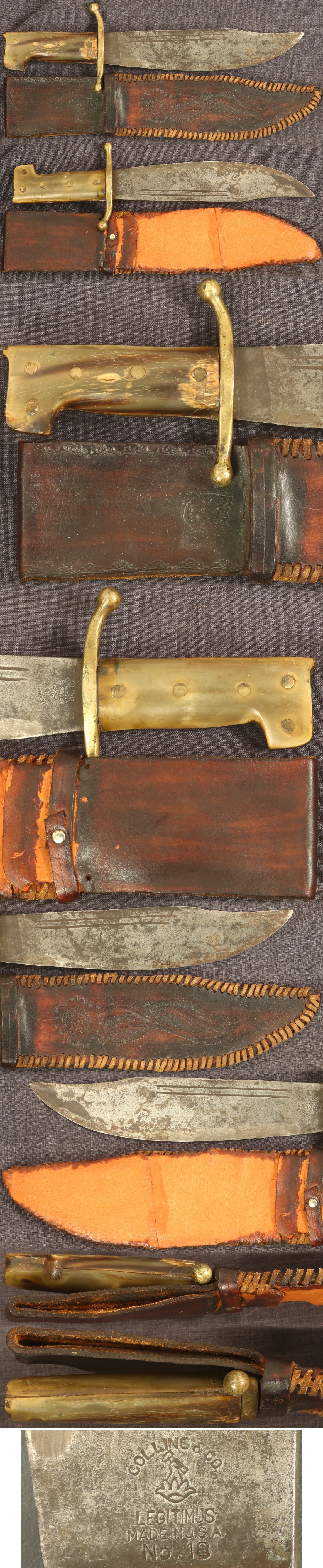 | Collins V44 "Carlson's Raiders" style knife with horn handle and original tooled sheath | Fine | $950.00 |