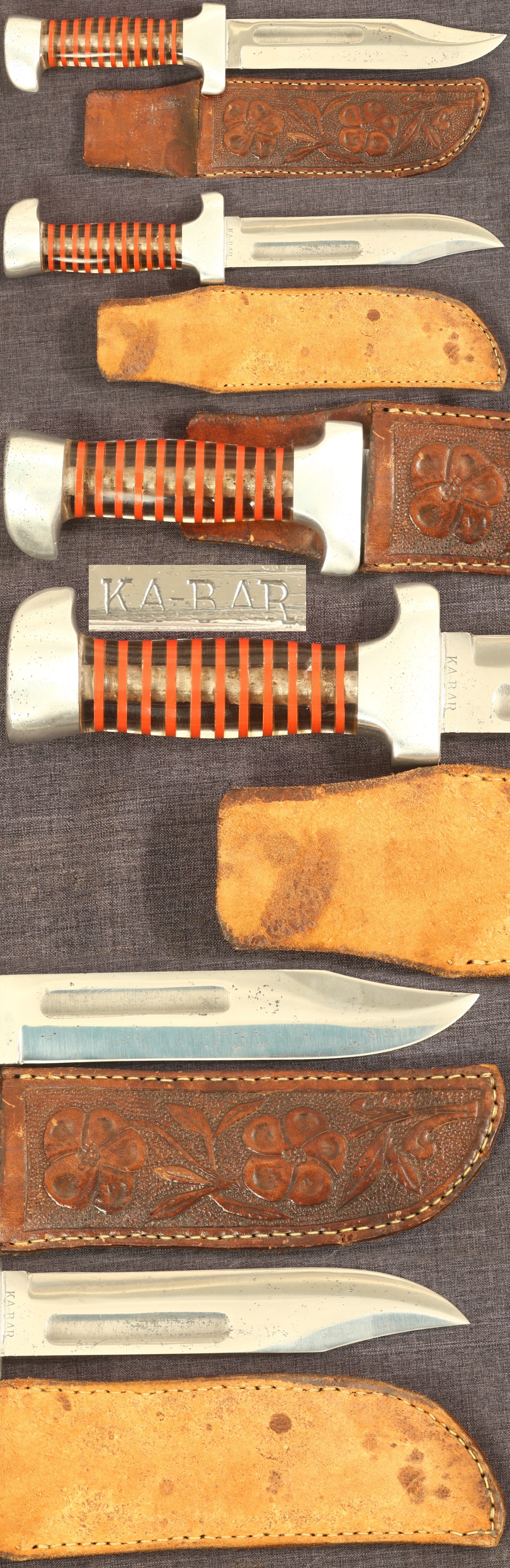 | Soldier made knife with red and clear plastic grip, 6-5/8" KA-BAR marked blade, with sheath | | $.00 |