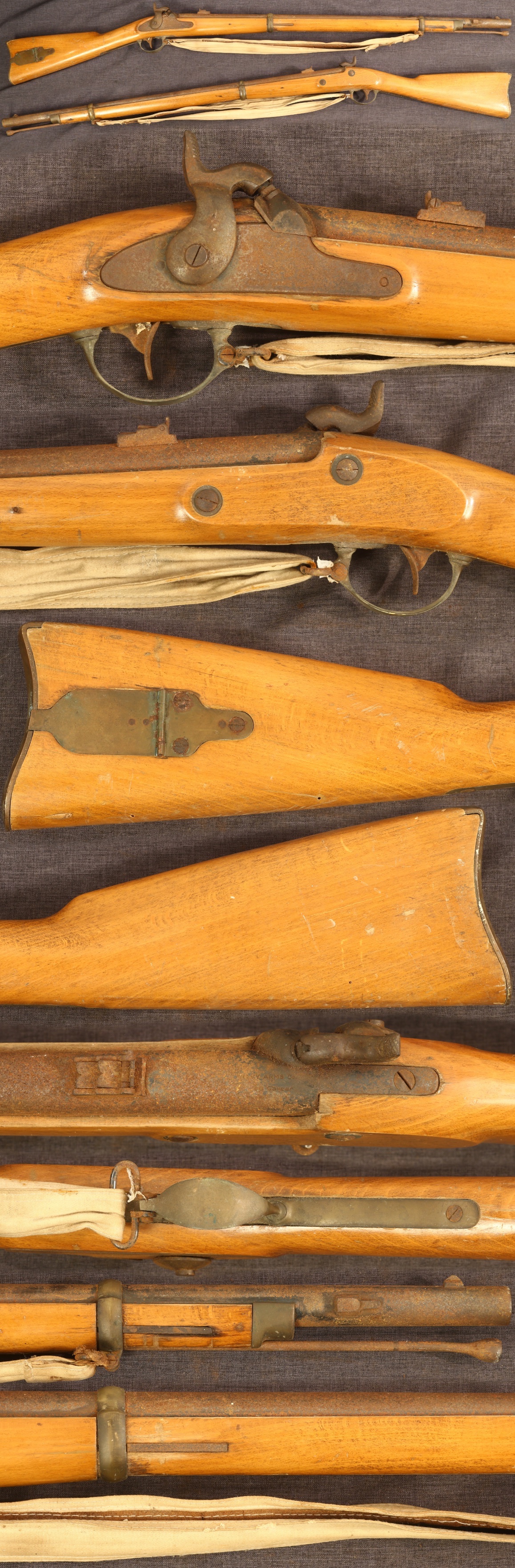 Navy Arms/Antonio Zoli M1863 Remington Zouave blackpowder replica rifle. Serial number 24508. 33" round barrel. Metal parts have a dark patina overall with storage rust on iron parts. Stock is fair, having scattered handling marks. This gun really has an old look to it to hang on the wall, or clean it up. Lock functions mechanically. We are not gunsmiths and do not warrant this gun to shoot safely. Please seek guidance from an expert in blackpowder gunsmithing if unsure about the safety and management of this rifle.
